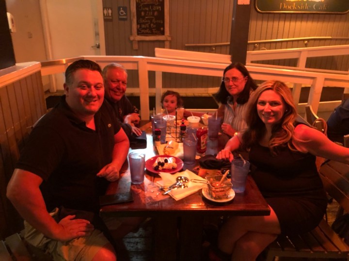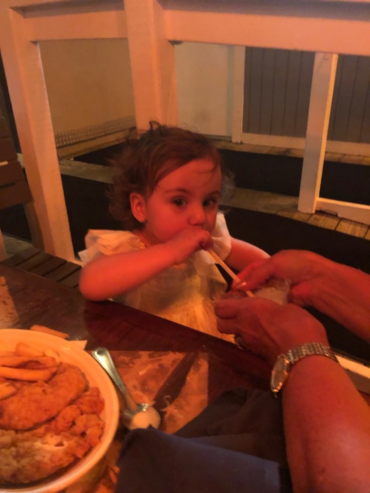 We ate dinner at 15th Street Fisheries. I had my usual fried shrimp, Jarmon had swordfish and DD his usual seafood sizzler. MJ had a French dip. We ordered chicken fingers for AB, but she wasn’t real interested. We also ordered her a big cup of milk which she sipped on throughout dinner and the ride home. She was especially excited about the ice cream we ordered her for dessert that she finished off with a straw so as to not miss out on a precious drop. The adults (mostly jarmon and I) enjoyed some delicious key lime pie for dessert.