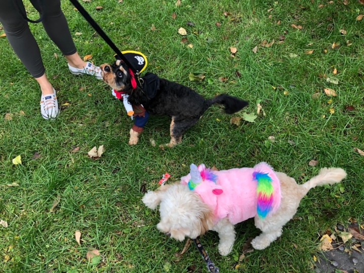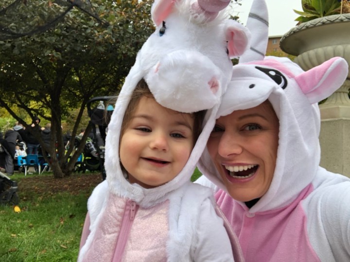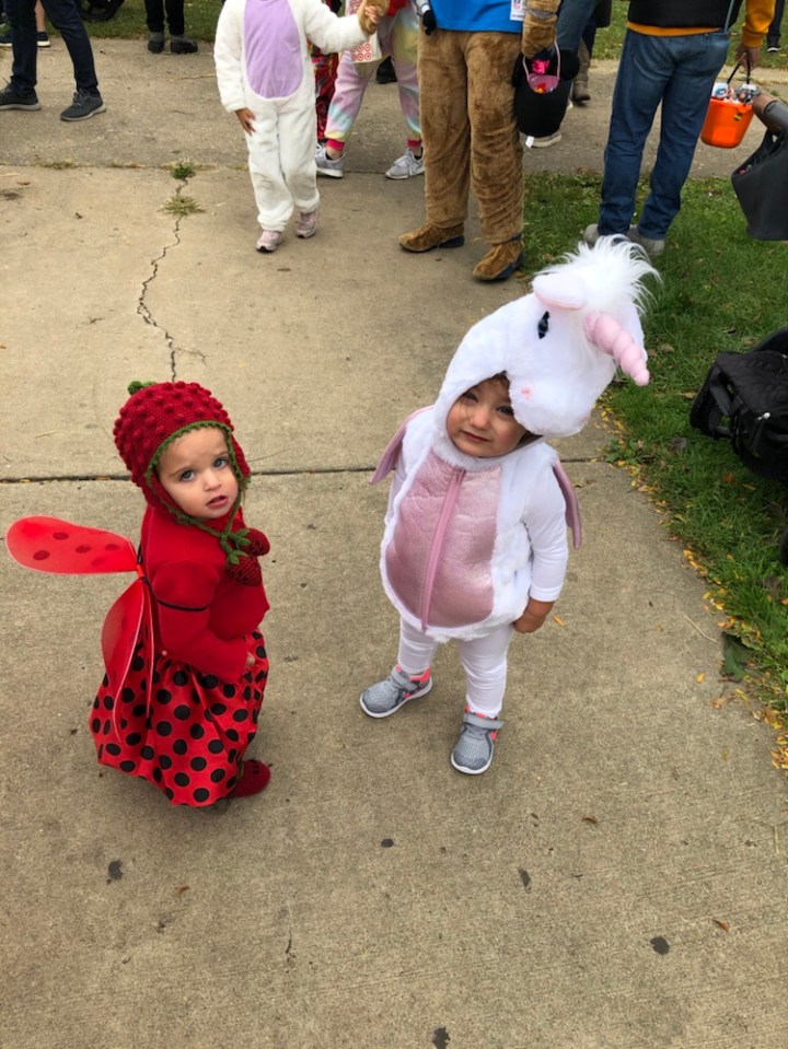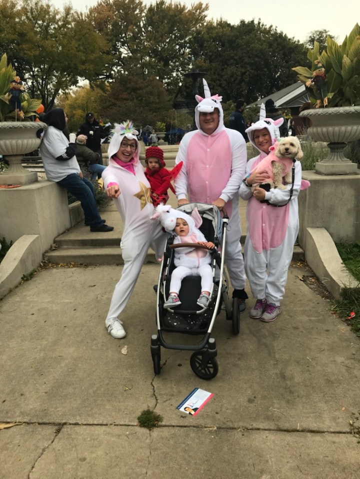 Saturday was our family Halloween outing. Since Jarmon was headed to Pittsburgh on Sunday morning for the Monday Night Steelers game and I was working on Halloween, the Saturday before was the only chance we were going to get to celebrate as a family. We thought about going to the Lincoln Park Zoo, but decided on the Wicker Park festival instead because Baxter could go too. I had previously purchased Baxter a unicorn costume because I thought Arabella would like it (and she did- she has literally been bringing it to him every day since Halloween), so I thought it would be fun for him to participate. When Jarmon found out that Arabella and Baxter were going to be unicorns, he asked if we were too? I said no— why would be spend money on costumes when literally all we would be doing was taking a photo then storing said costumes in our already full house? Well, my husband knows my weakness and went in for the kill saying, “But when in our lives will we have another chance to take that photo?” Five minutes later I was on Amazon ordering unicorn costumes for Jarmon and I. We wore them on Saturday. The weather wasn’t great, but we were determined to get out long enough to get some photos. We met friends at the park at about noon— and had about an hour before the rain started. We drove rather than walked so we could make a quick(ish) escape when the rain started. (My foot is getting better by the day, but I’m still not moving very quickly… and definitely not in place to be walking to the park). We didn’t really participate in any activities, but Arabella enjoyed seeing Sailor and running around in her costume. Franci and Joelie stopped by too. We even spotted Barkley- another cavapoo walked by Jan- in his adorable pirate costume. And when the rain started, we slipped out as quickly as we slipped in and were ready to get on with our day. Unfortunately, the weather was so crappy we never left the house again. But we got our family Halloween photos, so the day was not a total loss. We ended up ordering the rest of the baby gear we needed (some winter items and parts to make our single stroller a double) online. I hate online shopping– like, really hate it– but I’ve given in to it the last few months because of my foot. I still hate it, but guess it has its place.