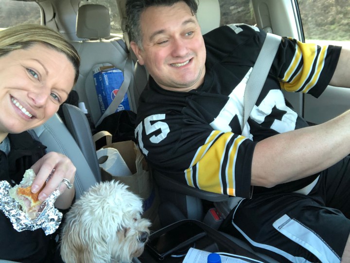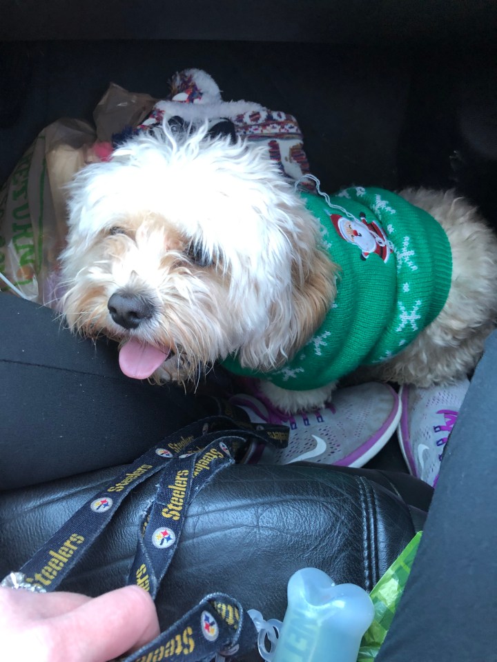 When we got to Pittsburgh we took our usual tree photos (we took them in Chicago too) before heading to baggage claim. My parents were overjoyed to see Baxter and Arabella. And I was excited to see Catie’s dad— band director Mr Collins— who was there to pick her up. I was catching up with him when Jarmon informed me that my bag was MIA. Always one to keep cool in public, I didn’t flip out. We filed a missing bag report, stopped at Starbucks for caffeine (and Baxter’s puppucino) and headed out.