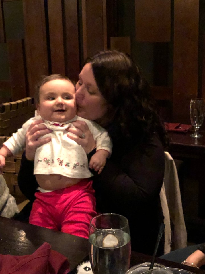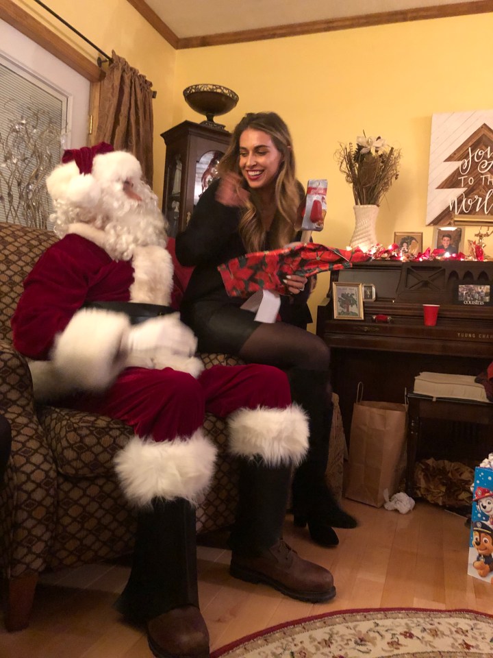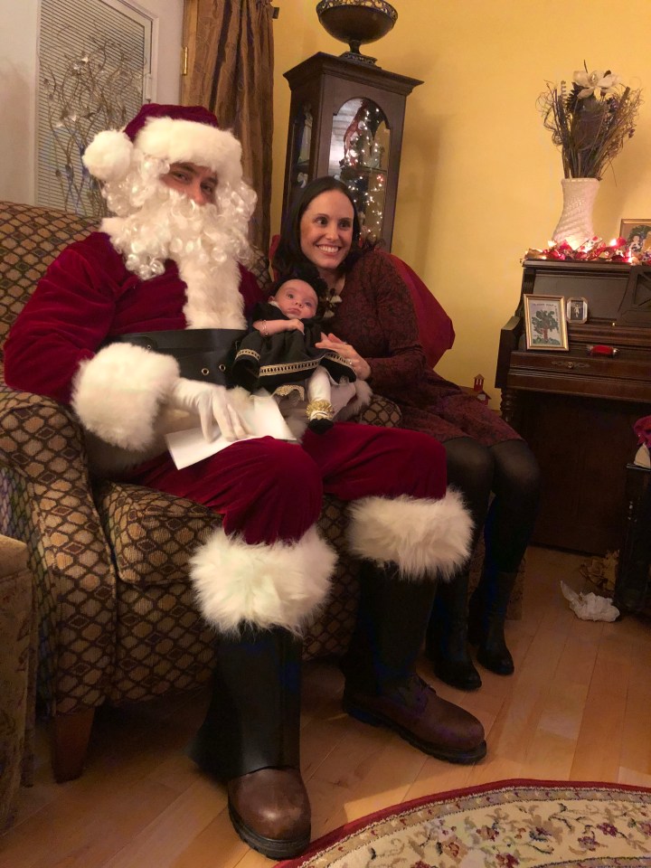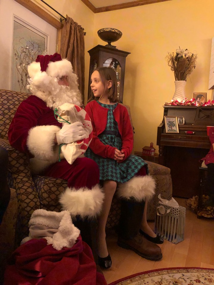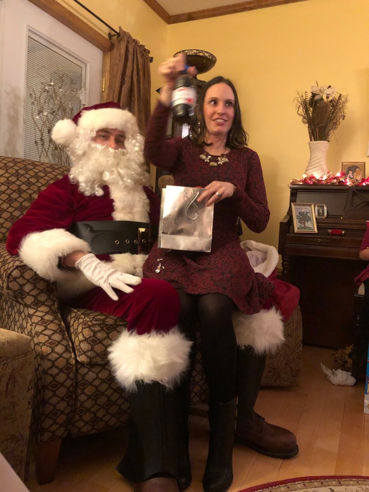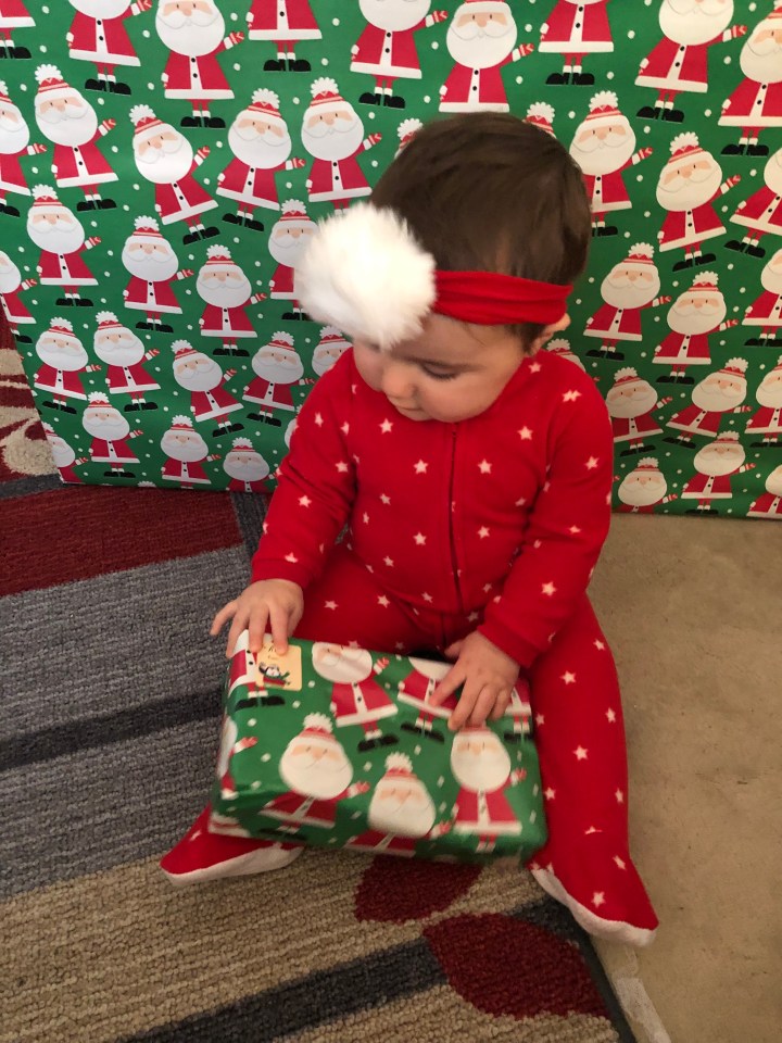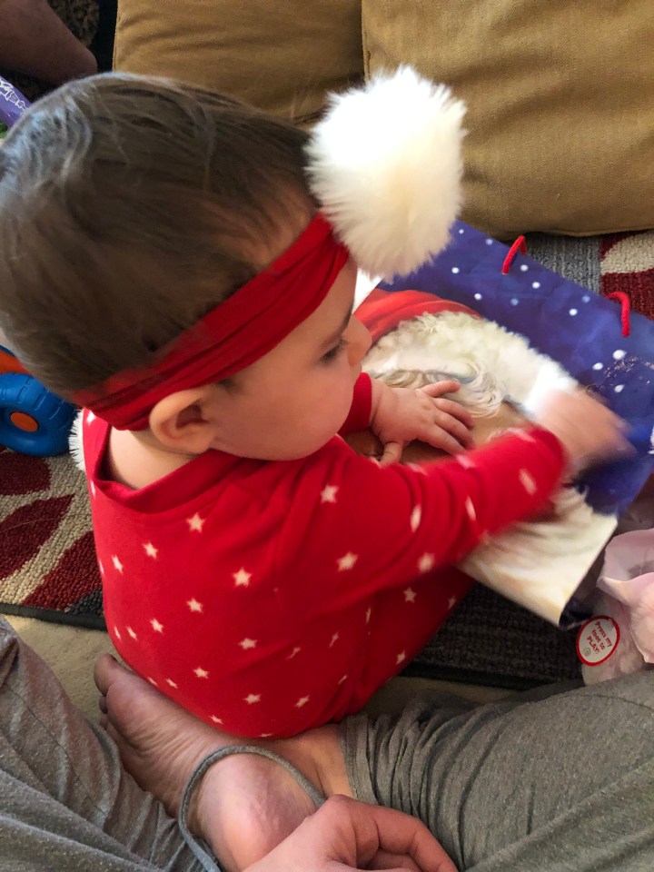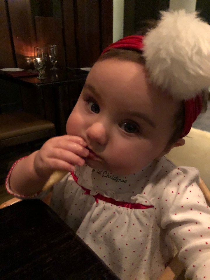 Perhaps most adorable— Arabella seeing Santa again. I always loved it as a child when Santa visited the family Christmas party because he brought us one present early. To be honest, I forget what he gave Arabella because I was distracted by how mesmerized she was by him. Arabella, once again, gazed into Santa’s eyes and pulled on his beard. She seemed legitimately sad when I pulled her off his lap— poor kid. (Unfortunately, you’ll have to take my word for it– the photos of Arabella with Santa are all on DD’s good camera and consequently not on my phone.)