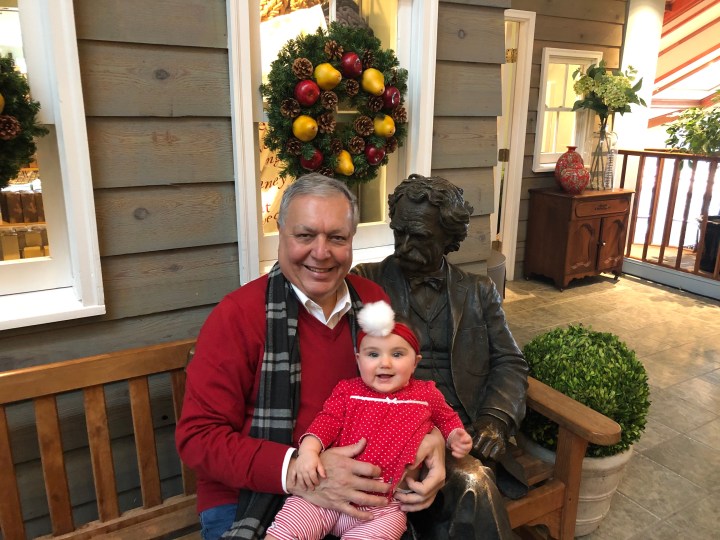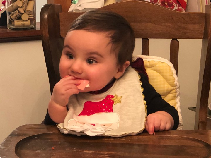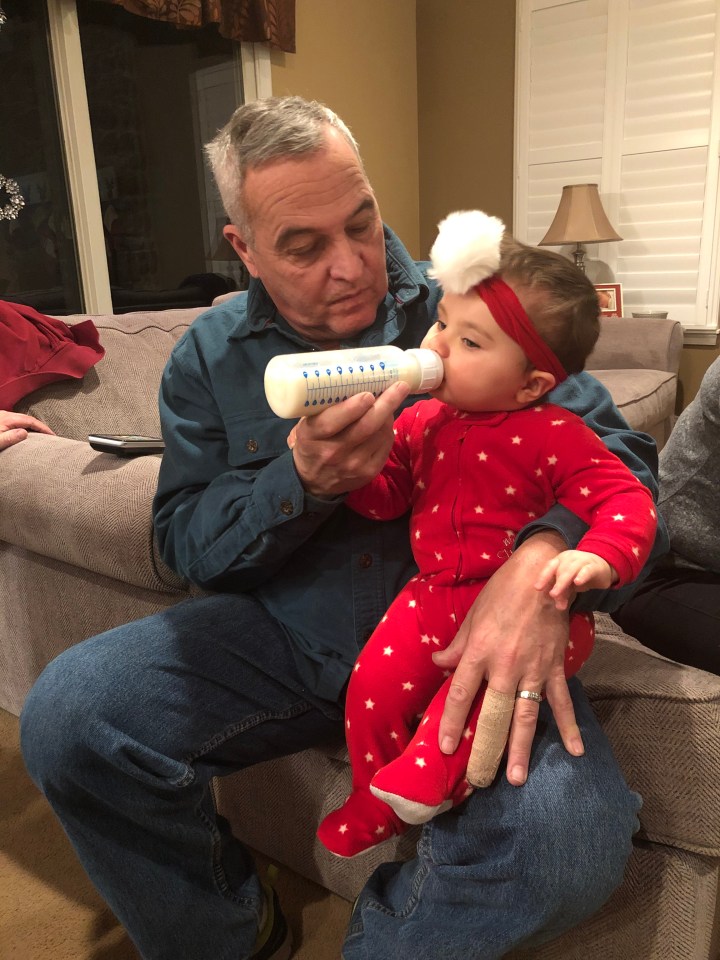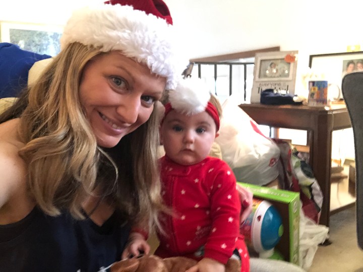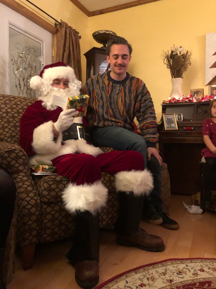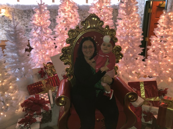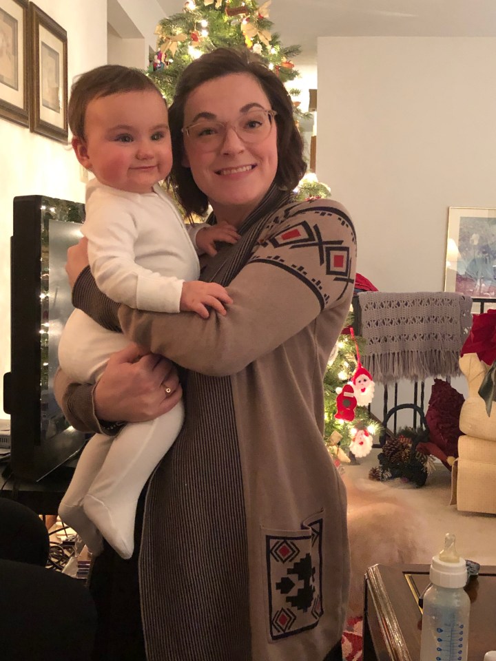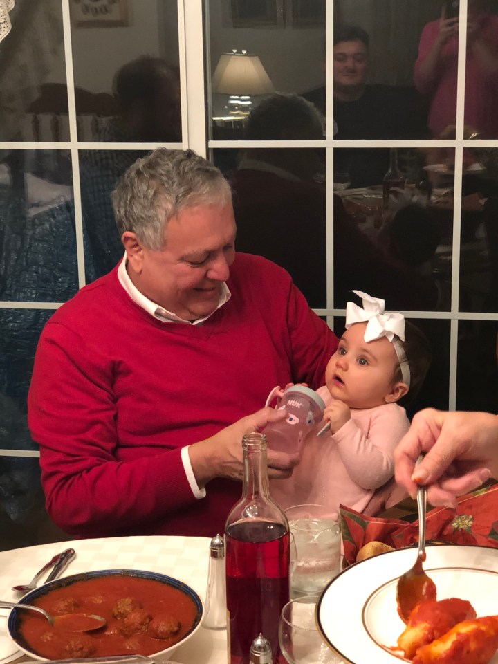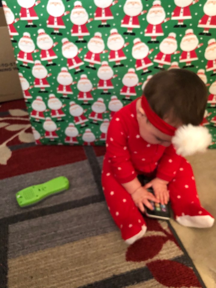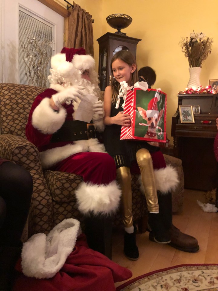 Perhaps most adorable— Arabella seeing Santa again. I always loved it as a child when Santa visited the family Christmas party because he brought us one present early. To be honest, I forget what he gave Arabella because I was distracted by how mesmerized she was by him. Arabella, once again, gazed into Santa’s eyes and pulled on his beard. She seemed legitimately sad when I pulled her off his lap— poor kid. (Unfortunately, you’ll have to take my word for it– the photos of Arabella with Santa are all on DD’s good camera and consequently not on my phone.)