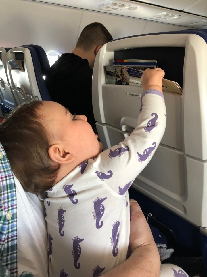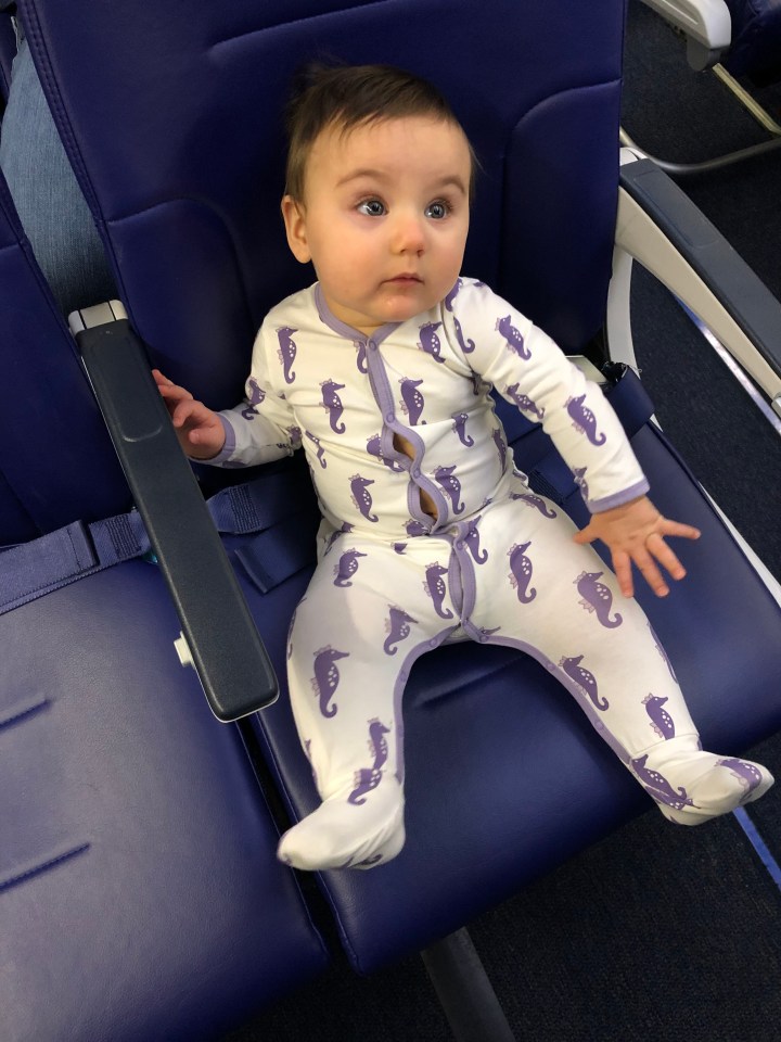 The flight was completely full. (When we checked in we got C59 and 60… yes, the numbers go that high). The poor guy who was last to board got stuck by us. He seemed hesitant about the baby— obviously not realizing he was also sharing his row with a dog. Both Arabella and Baxter were good on the flight until I noticed Arabella was holding the man’s arm while he slept— oops! I struggled to keep her contained to the confines of the center seat space while jarmon watched his iPad and enjoyed a Bloody Mary (yes, you read that right). Then I made him take Arabella to prevent anymore unwanted hand holding.