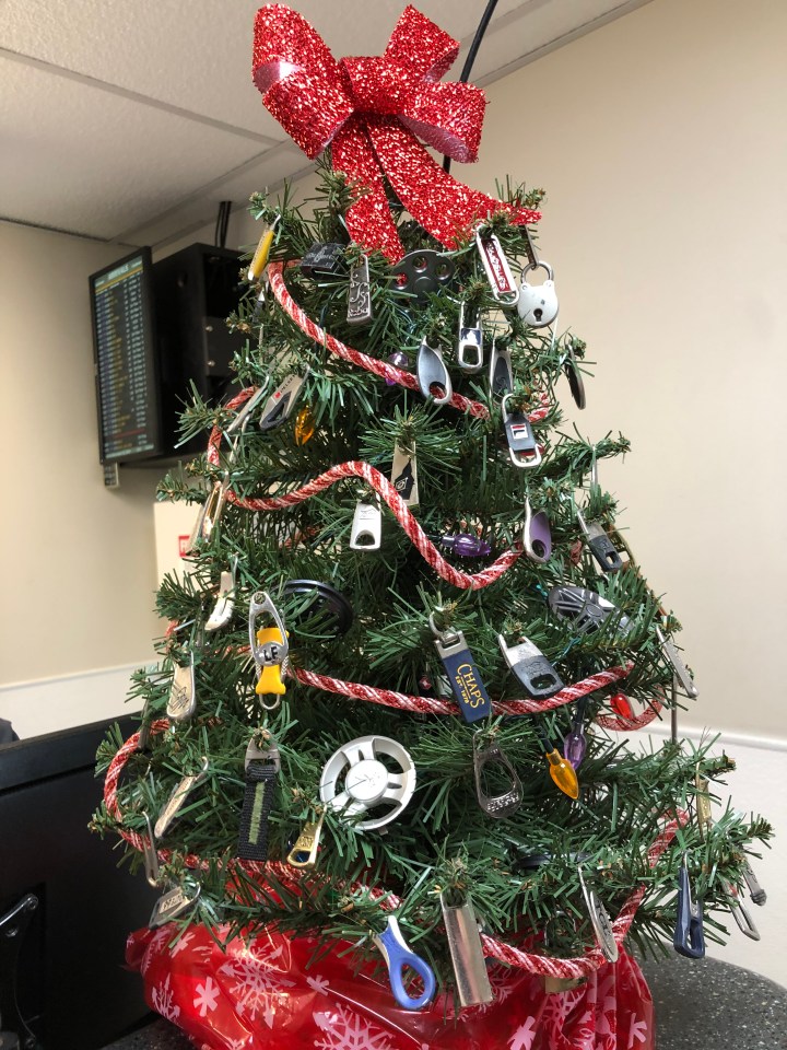 Oh, and because it’s neat… checkout the ornaments on the tree in the Southwest baggage office– lost zippers! Pretty cool, right?