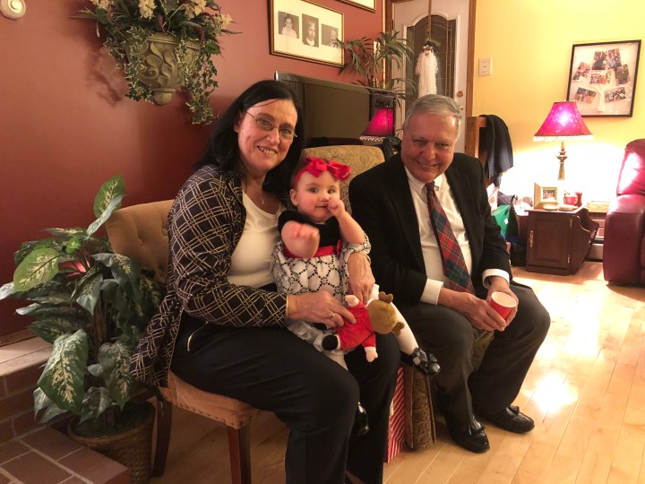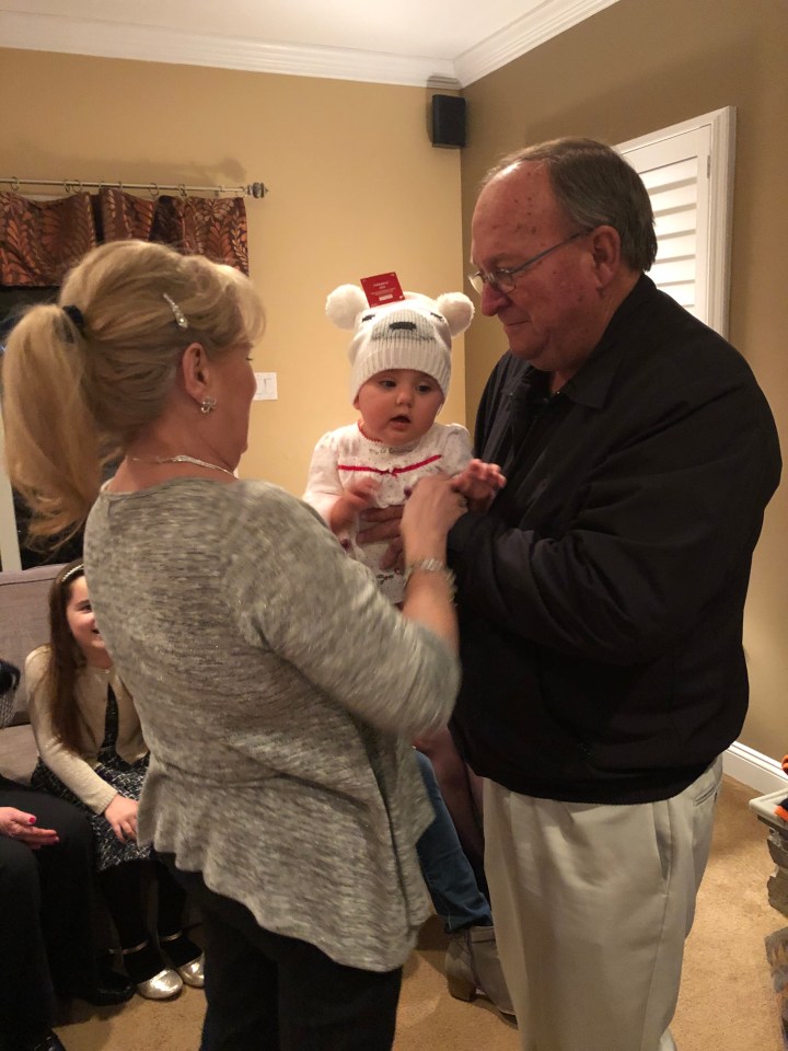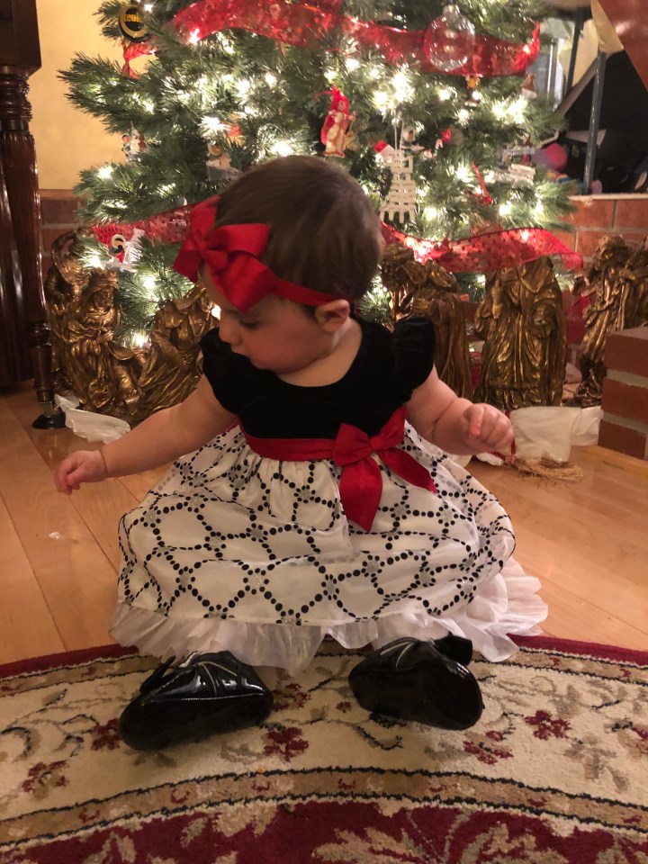 Arabella looked like a little princess in her Christmas dress. She loved the party— smiling as she was passed from one set of adoring hands to the next.