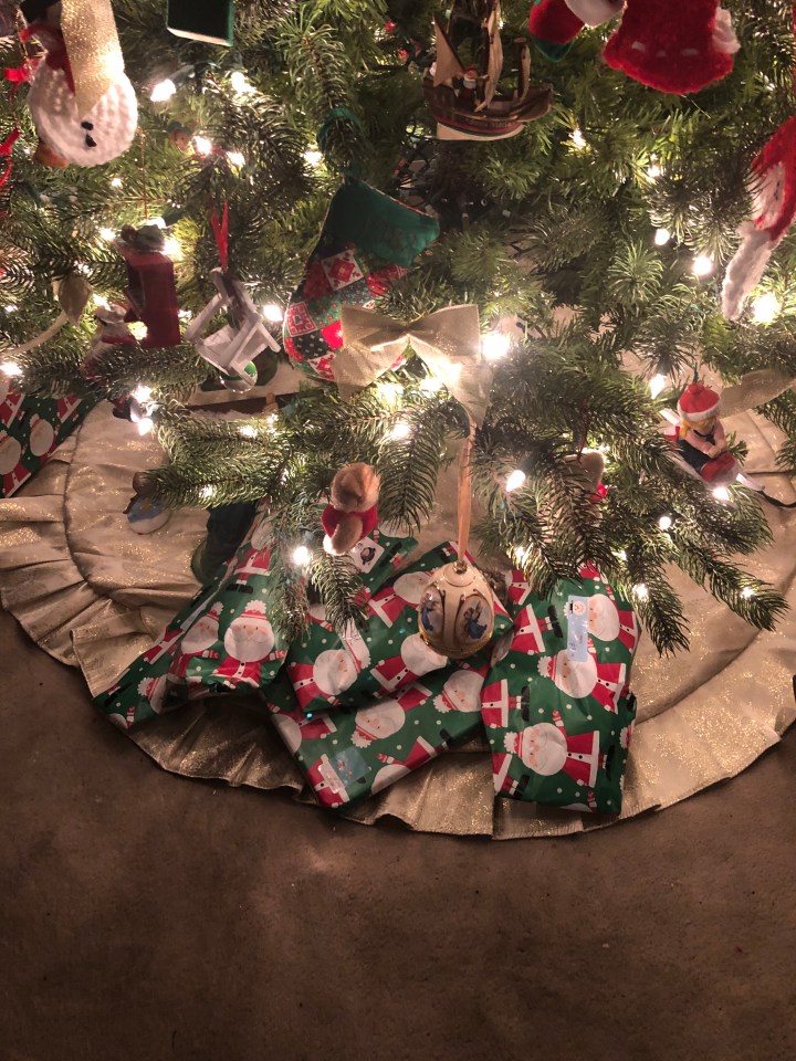 When we got home DD and MJ went to midnight mass. Jarmon and I stayed home so Arabella could sleep. We watched Home Alone 2, then had dessert when DD and MJ got home. We arranged Arabella’s presents in front of the tree before calling it a night. Staying up