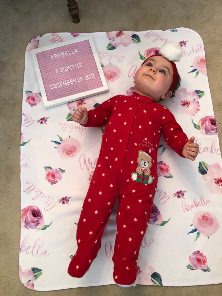 Oh- and because Arabella’s 8-month birthday fell on Christmas, we took her milestone photos in her Christmas pj’s.