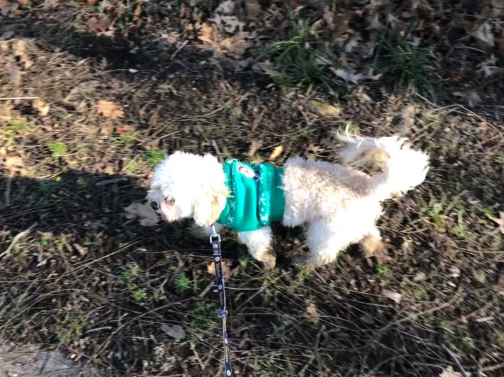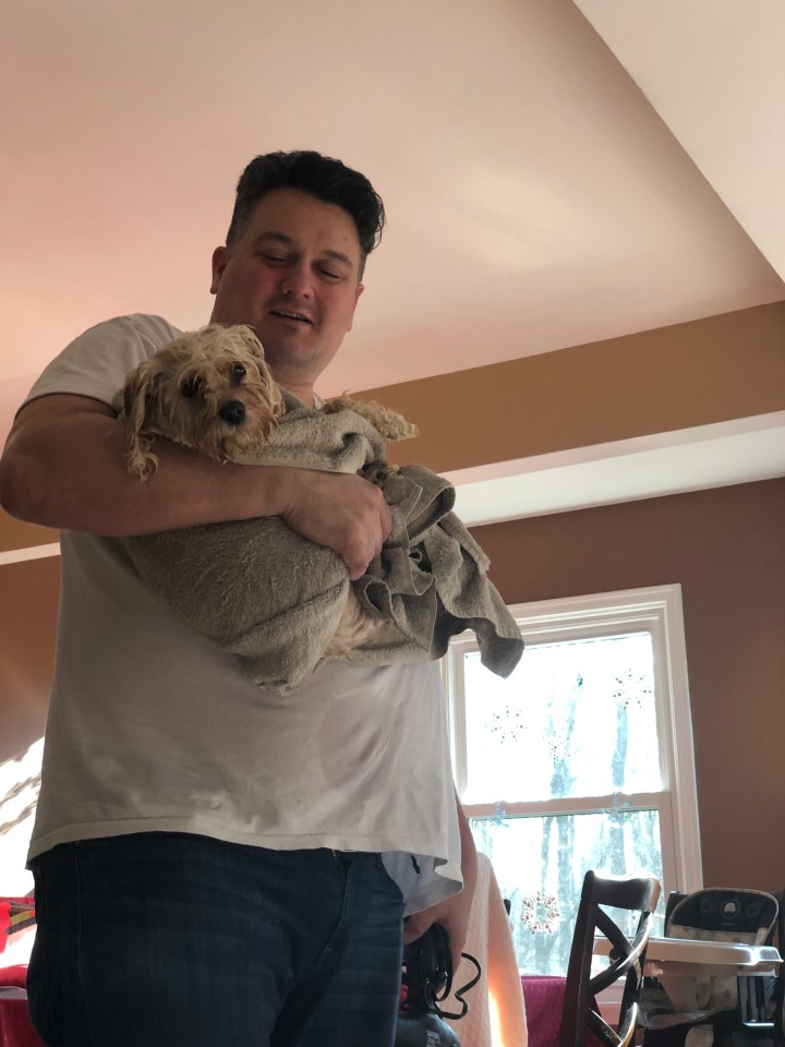 In the afternoon, the girls took the dogs to the park while the boys stayed at home and napped. It was a picturesque day, but the park was a little muddier than we expected. Booey faired just fine because he has short hair. Baxter, on the other hand, was filthy— which necessitated a bath when we got home. He seemed to enjoy a bath in a tub much more than his usual baths in our laundry tub.