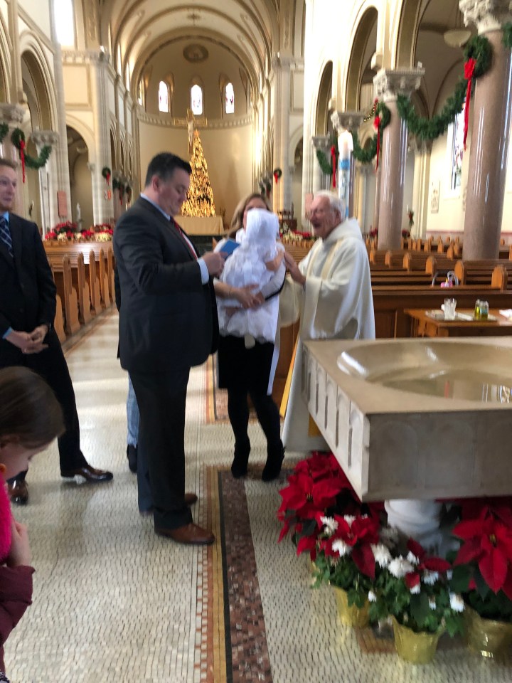 Today was Arabella’s baptism. We got moving somewhat early to get everyone ready and out the door by 1130a. We were meeting Father Earl (who married jarmon and I) after 1130a mass at St Vincent Basilica.