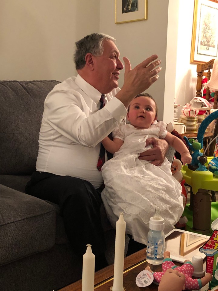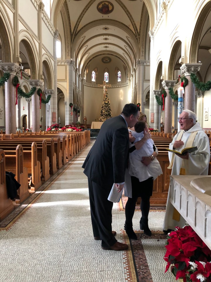 Once everyone left after mass, we moved over to the church to meet Father Earl. He was excited to meet Arabella and we were excited for him to meet her. She loved him— and judging by the way she gazed at him, it’s possible she thought he was Santa.