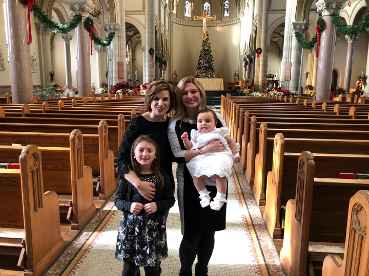 Afterward, we took some photos in the basilica, which was even more beautiful than usual because of the Christmas decorations. We got pretty much every combination of people you can imagine, but I think my favorite was Jamie and I with our goddaughters— Arabella and Mia. So many years of friendship in that photo. And so many more to come.