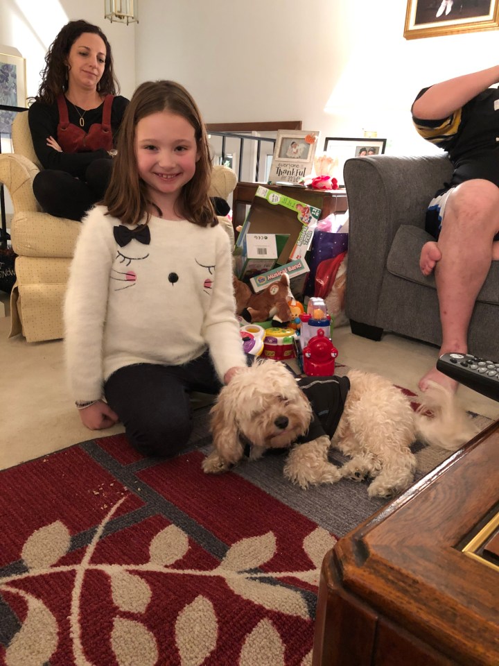 Margo and her family stopped at the house on their way back to Connellsville, which was nice because we got to visit with them a bit more. Arabella buddied up to Lucia— Baxter claimed Greta. We had a nice visit.
