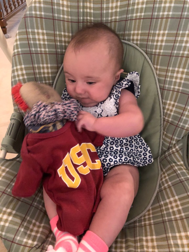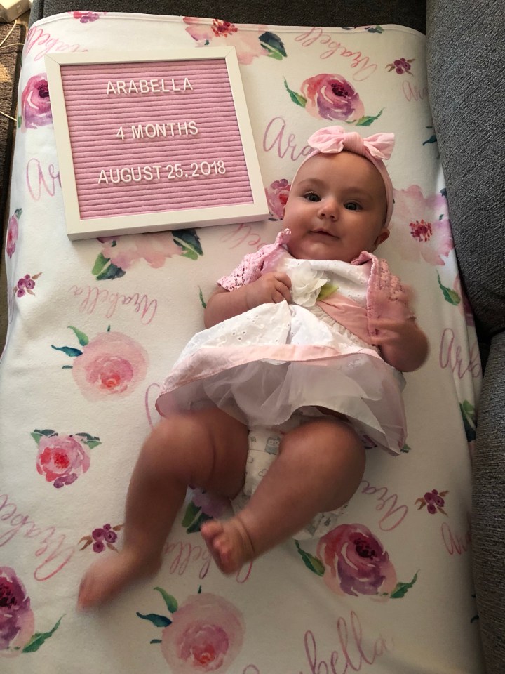 Arabella had a few milestones today. She rolled to her left for the first time. She also ate oat cereal and ate from a spoon for the first time. On the first try, she was confused and kind of indifferent. The second time she was seeking out the spoon and swallowing the cereal. Amazing! I had no idea a four month old could do this. I’m generally not a fan of spoon feeding any thing to any one— but when it’s my kid… and it’s her first food… and she’s actually interested in the spoon… it’s pretty stinking adorable.